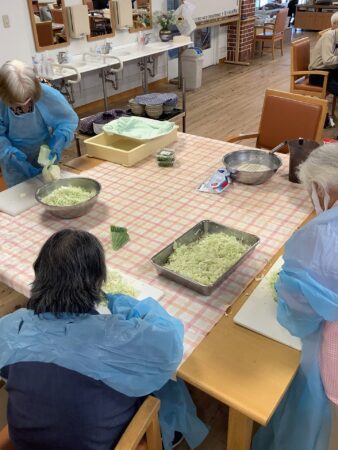 手分けをして大量のキャベツを刻んでいきます。