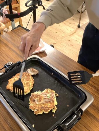 できあがったお好み焼きは美味しくお昼ご飯にいただきました。