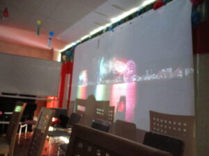 最初に花火映像を大きなスクリーンで鑑賞していただき
