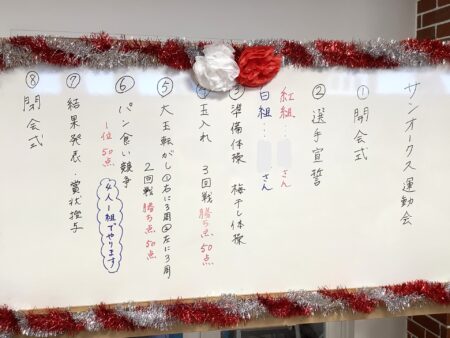 玉入れ、大玉転がし、パン食い競争…と運動会の定番種目が並びます。