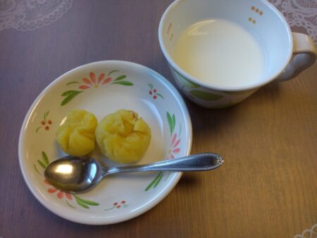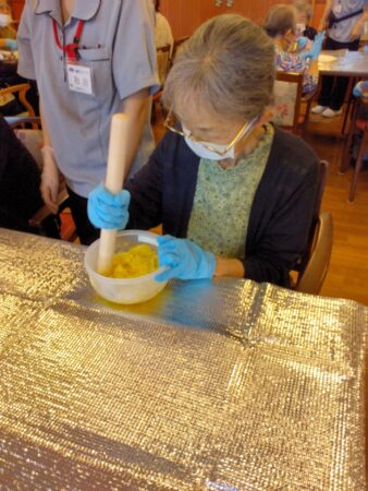 次に、おやつイベント、【ご当地おやつ】【さつまいもの茶巾しぼり】です。