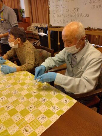 【さつまいもの茶巾絞り】は、皆様に手作りしていただきました。