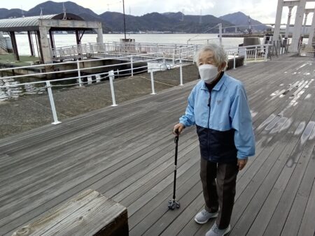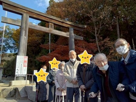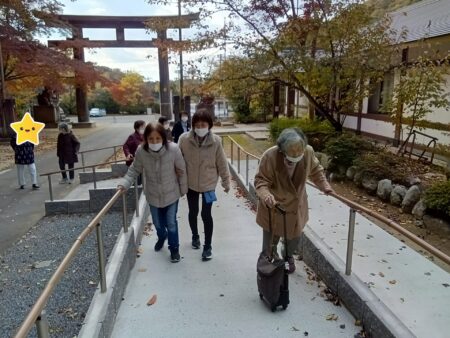 11月中旬、岡山港と護国神社にて屋外歩行訓練を実施いたしました。