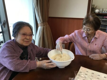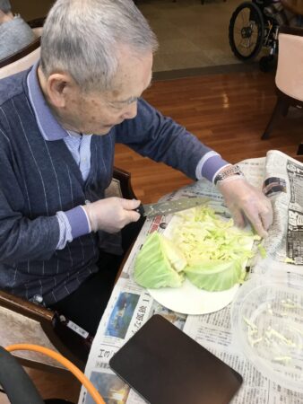 女性入居者様は流石の手裁きであっという間にきれいな千切りキャベツが完成していました!(^^)!