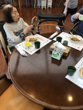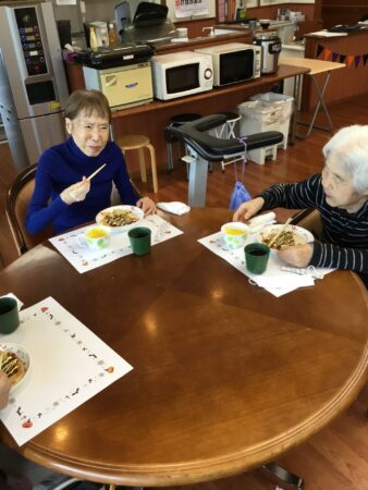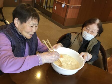 「温かくておいしいわぁ」「キャベツがたくさん入っていておいしい」ととても好評でした。